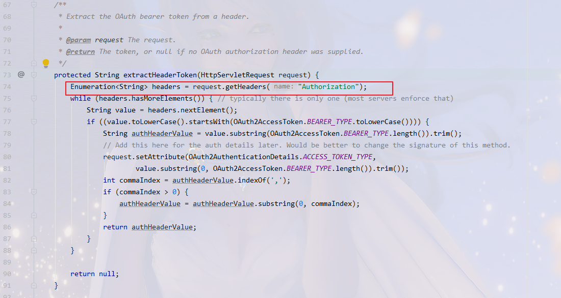 String authHeaderValue = value.substring(OAuth2AccessToken.BEARER_TYPE.length()).trim();